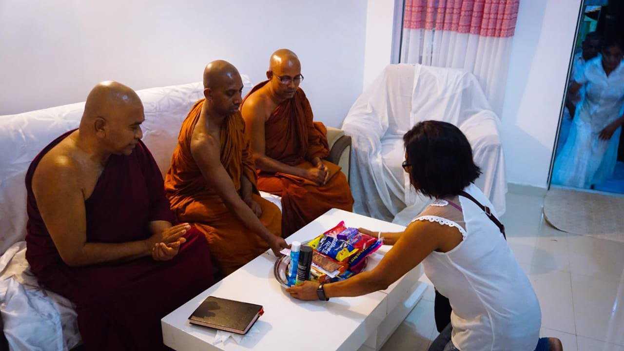 # උතුම් මහා සංඝරත්නය වඩම්මවා සවස් යාමයට කැප වන්නා වූ පාන පූජාව සුදු ලූණු ආදි ඖෂධ පූජාවන් පූජා කරමින් උන්වහන්සේලා සැමට සීනි මට්ටම් පරික්ෂා කිරීමේ උපකරණ පූජා කරමින් උන් වහන්සේලා සමග පිරිත් සජ්ජායනා කරමින් අග්‍ර ගන්‍යයේ පුණ්‍ය සම්භාරයක් රැස් කරගන්නා ලදි…