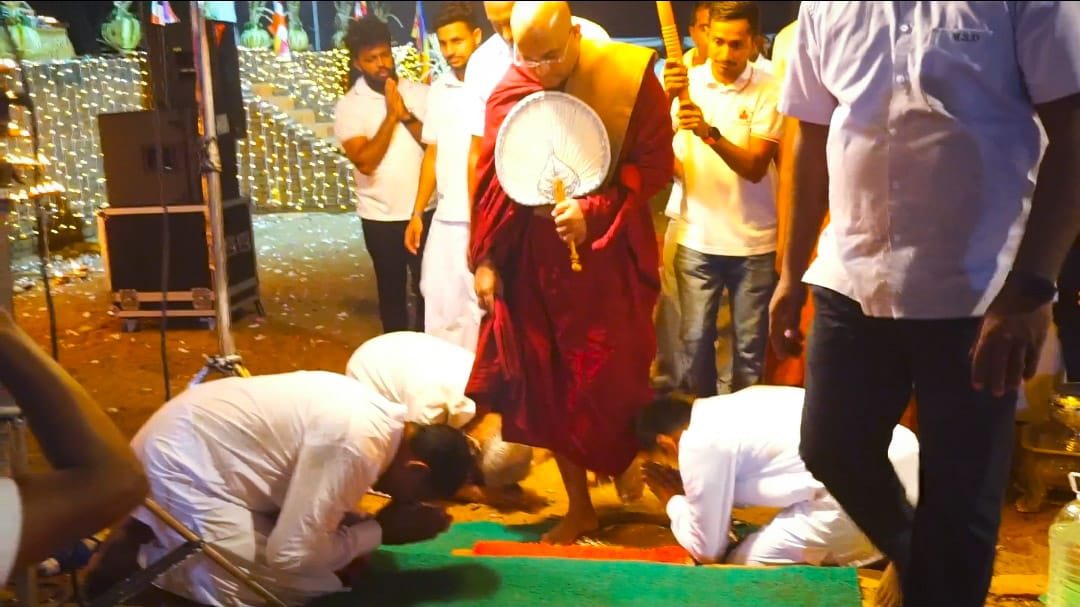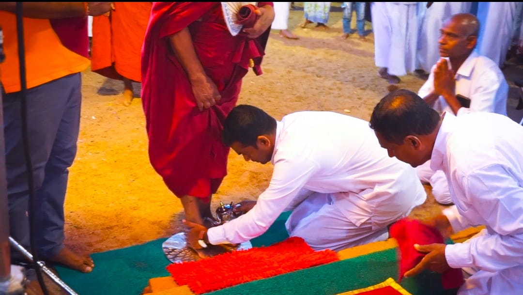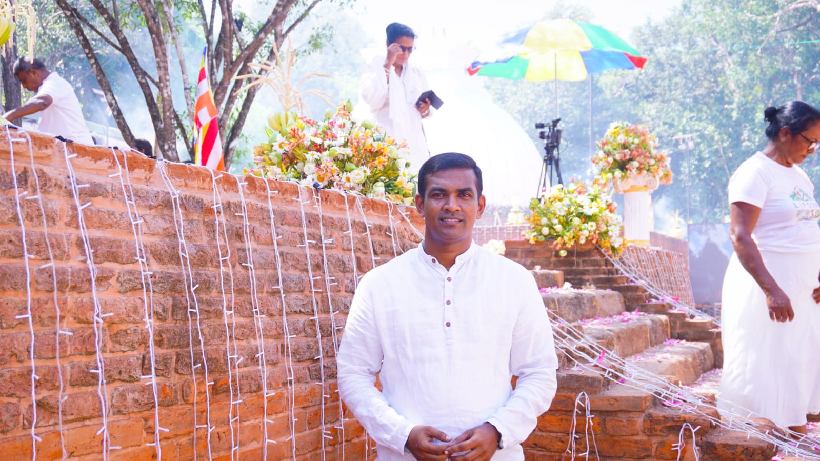 සපුමල්ගස්කඩ දාගැබ ප්රතිසංස්කරණය කිරීමෙන් පසු මංගල උදෑසන සම්බුද්ධ පූජාව සිදු කරගනිමින්