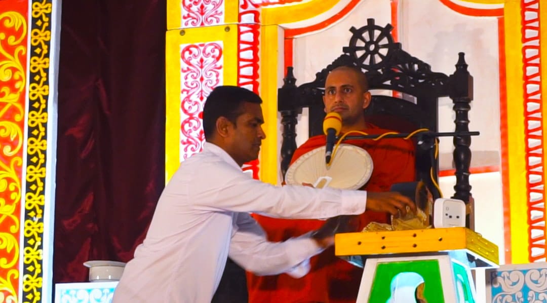දේශකයාණන් වහන්සේලාට දැහැත්වට්ටිය පූජා කරමින් දේශනාවට ආරාධනා කරමින්…