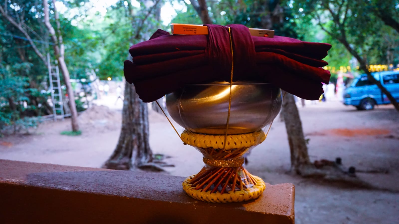 # ගෞරවණීය දේශකයාණන් වහන්සේලා උදෙසා කැපසරු තායි කොට්න් වේවැල් පාත්රා ආධාරක සහිත අෂ්ඨපරිස්කාරක 05ක් සදහා රු.157,000/=