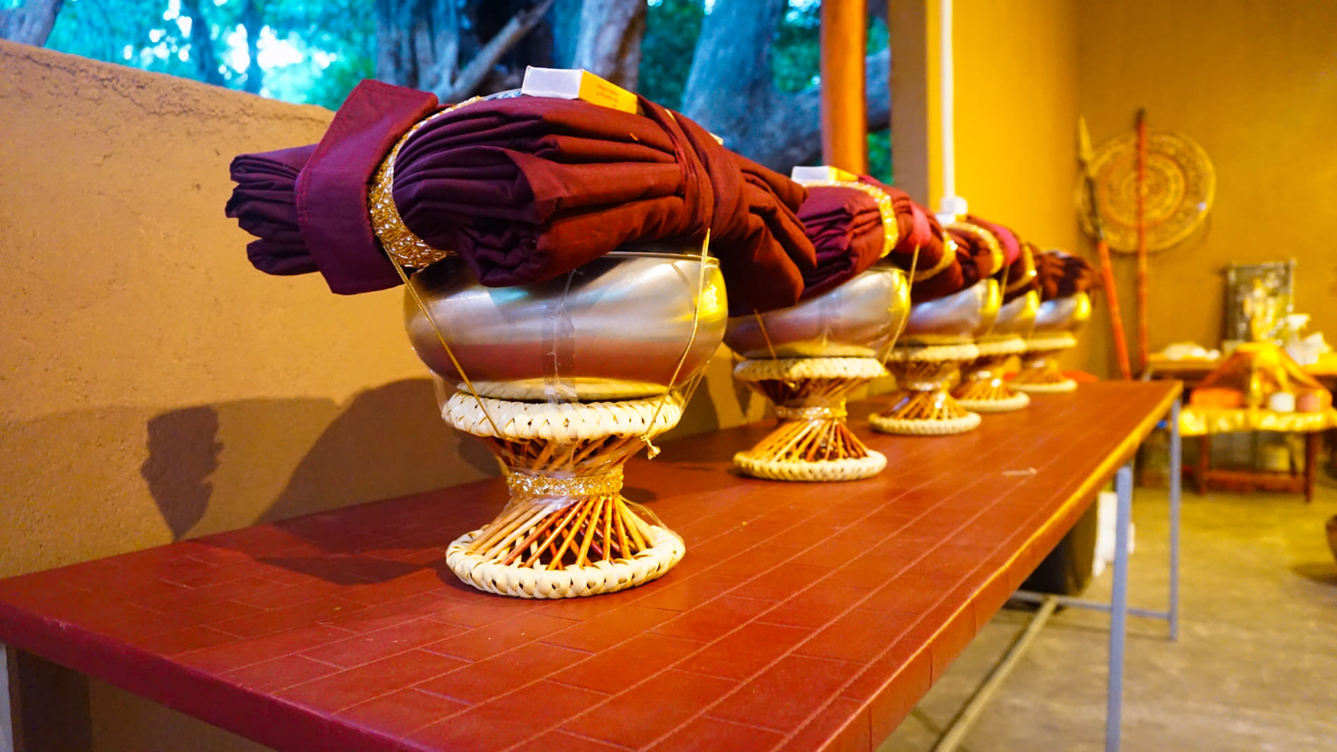 ගෞරවණීය දේශකයාණන් වහන්සේලා උදෙසා කැපසරු තායි වර්ගයේ අෂ්ඨපරිස්කාරක පූජාවන් සිදු කරගනිමින්