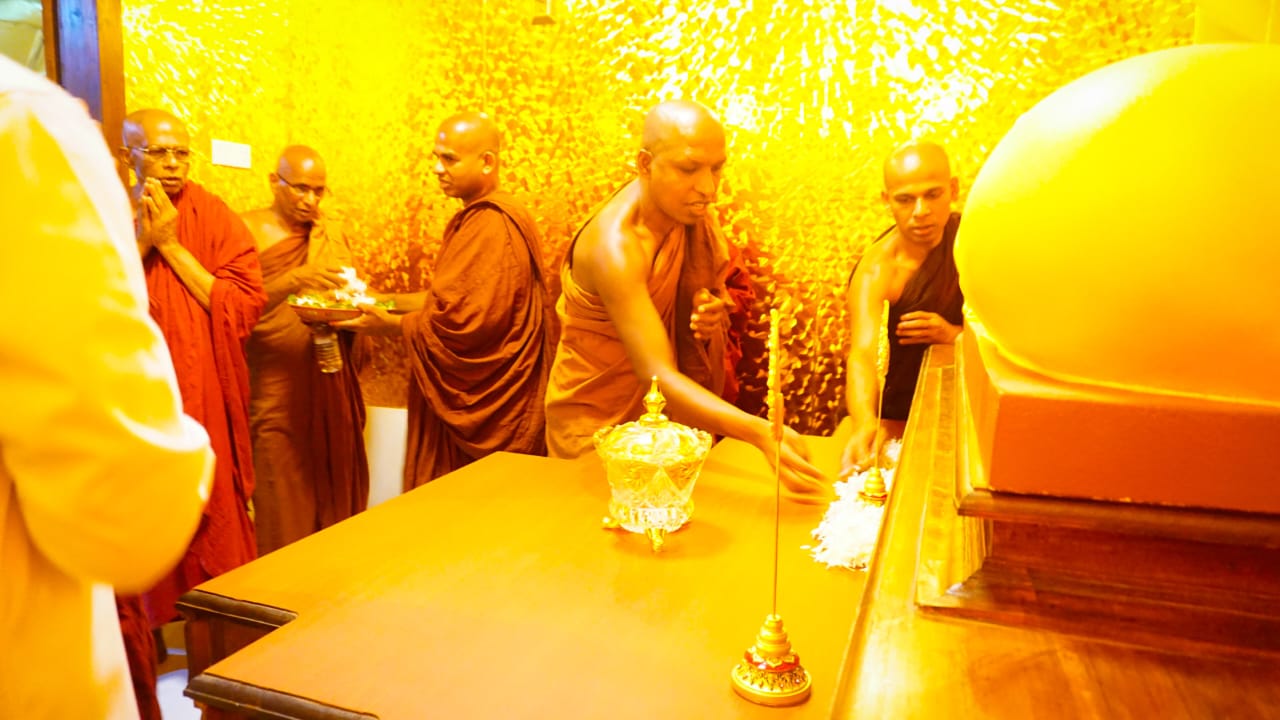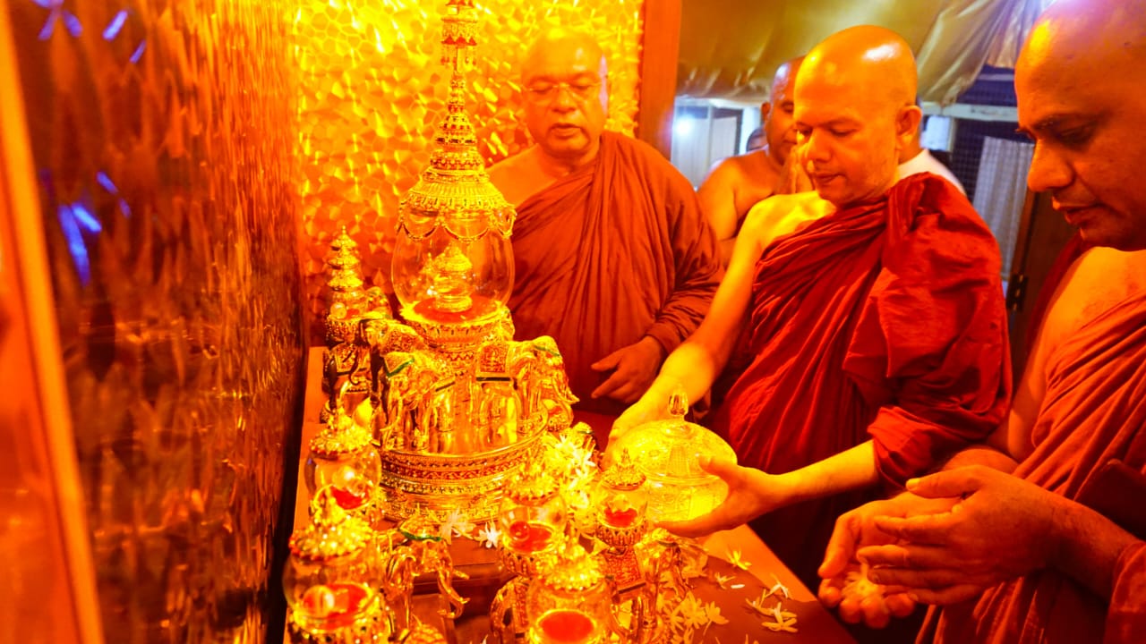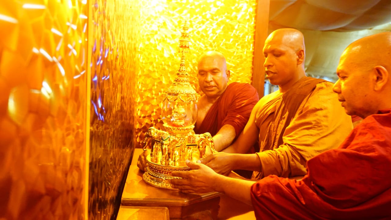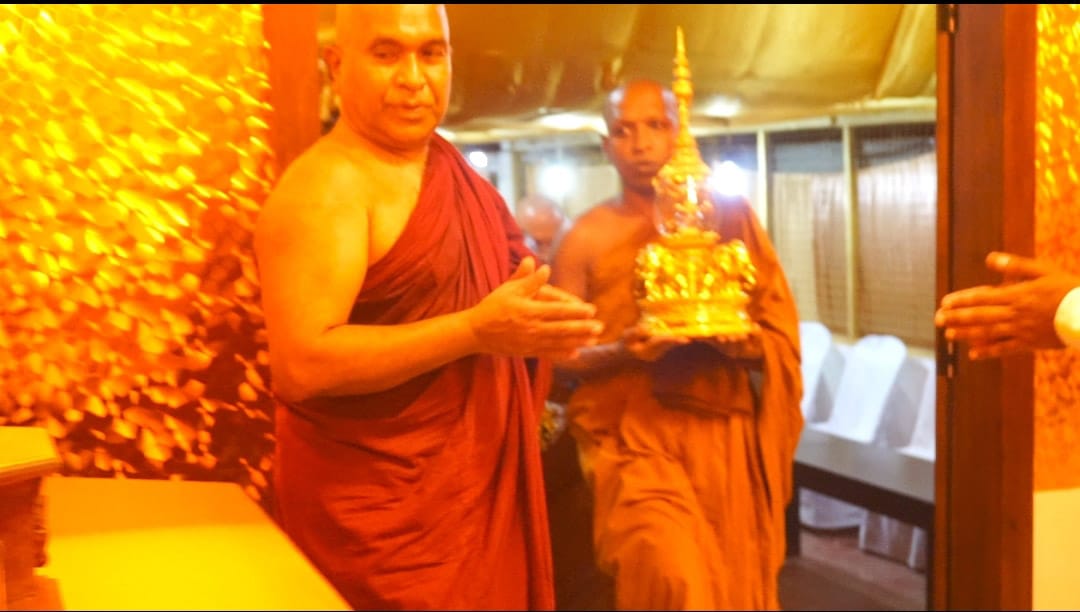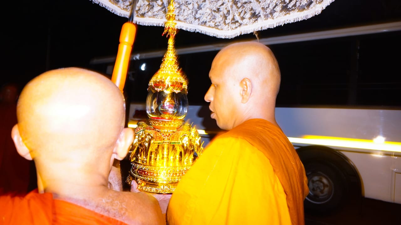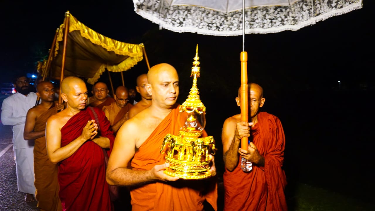 පාගමනින් රුවන්වැලිසෑ පරිශ්‍රයේ සිට අනුරාධපුර පෑතිස් වෙහෙර සඝසතු දාන ශාලා පරිශ්‍රයේ අභිනවයෙන් ඉදිකළ සම්බුද්ධ මණ්ධිරය වෙත වඩම්මවා මහා සංඝරත්නය විසින්ම තැන්පත් කරන ලදි.