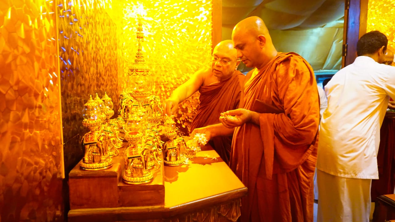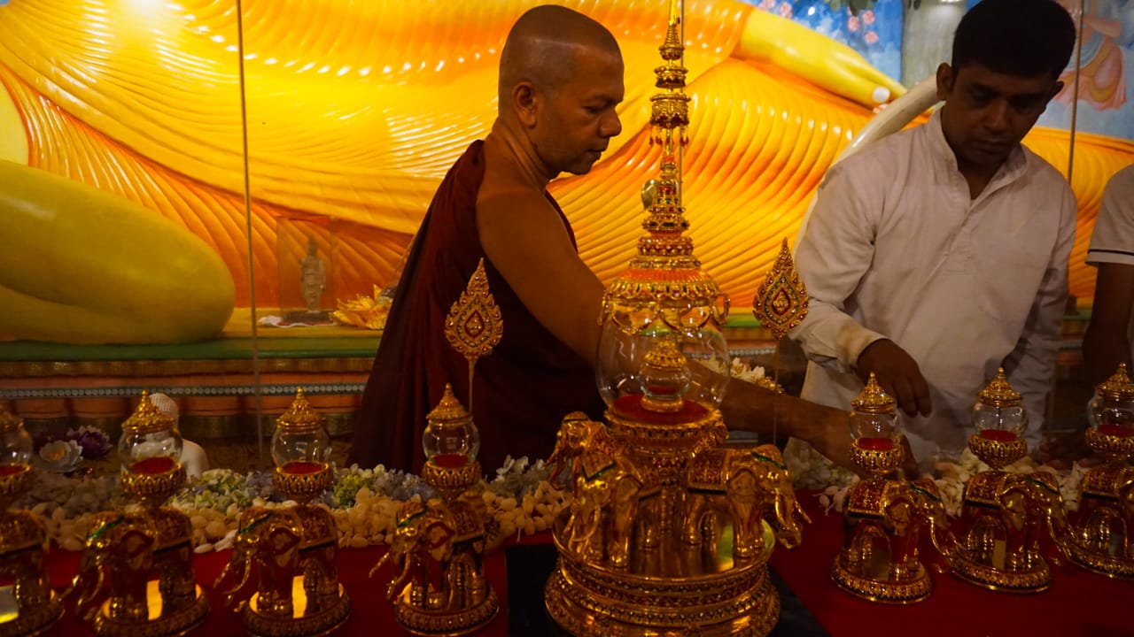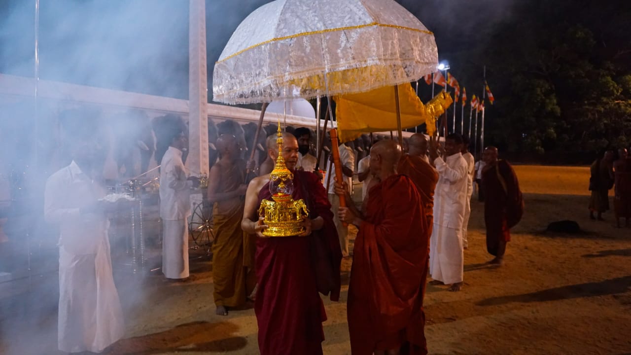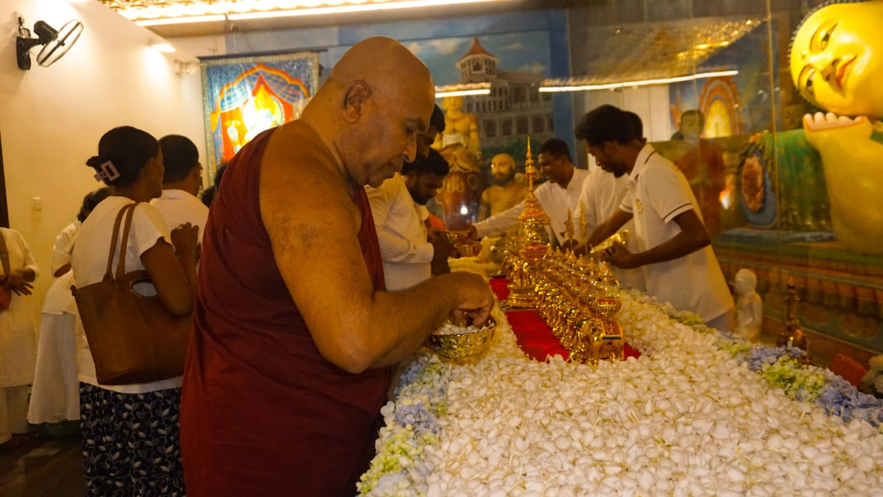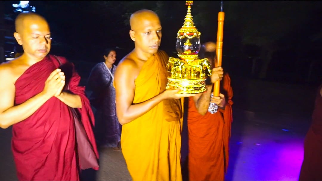 පාගමනින් රුවන්වැලිසෑ පරිශ්‍රයේ සිට අනුරාධපුර පෑතිස් වෙහෙර සඝසතු දාන ශාලා පරිශ්‍රයේ අභිනවයෙන් ඉදිකළ සම්බුද්ධ මණ්ධිරය වෙත වඩම්මවා මහා සංඝරත්නය විසින්ම තැන්පත් කරන ලදි.