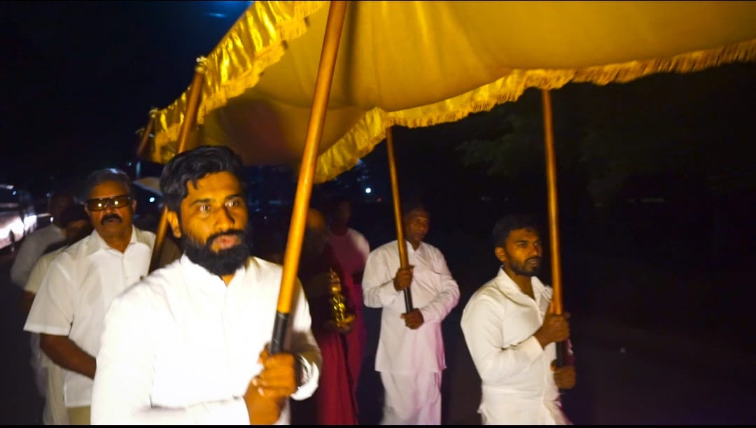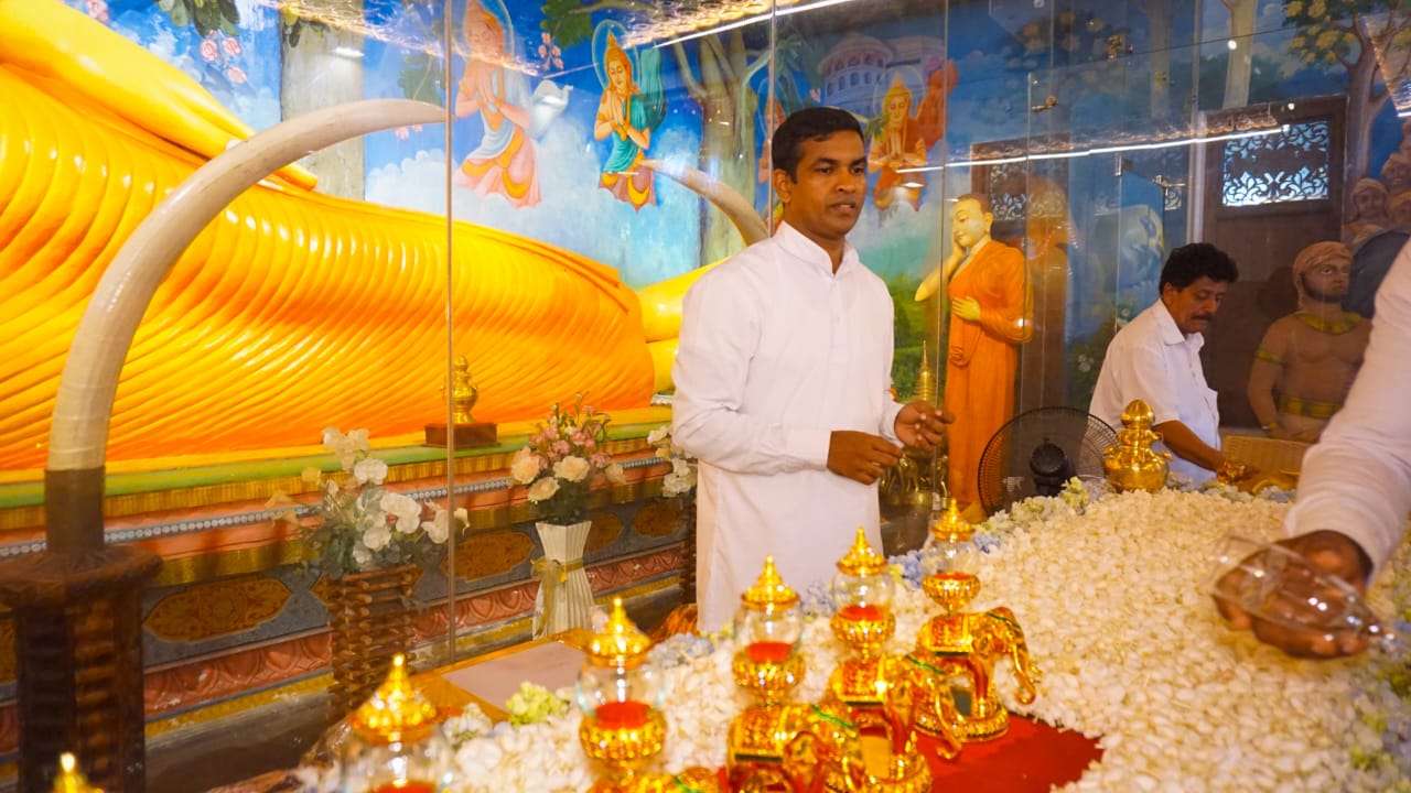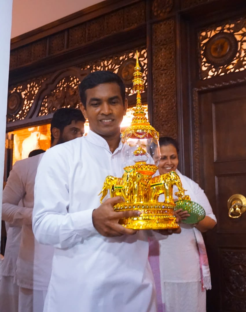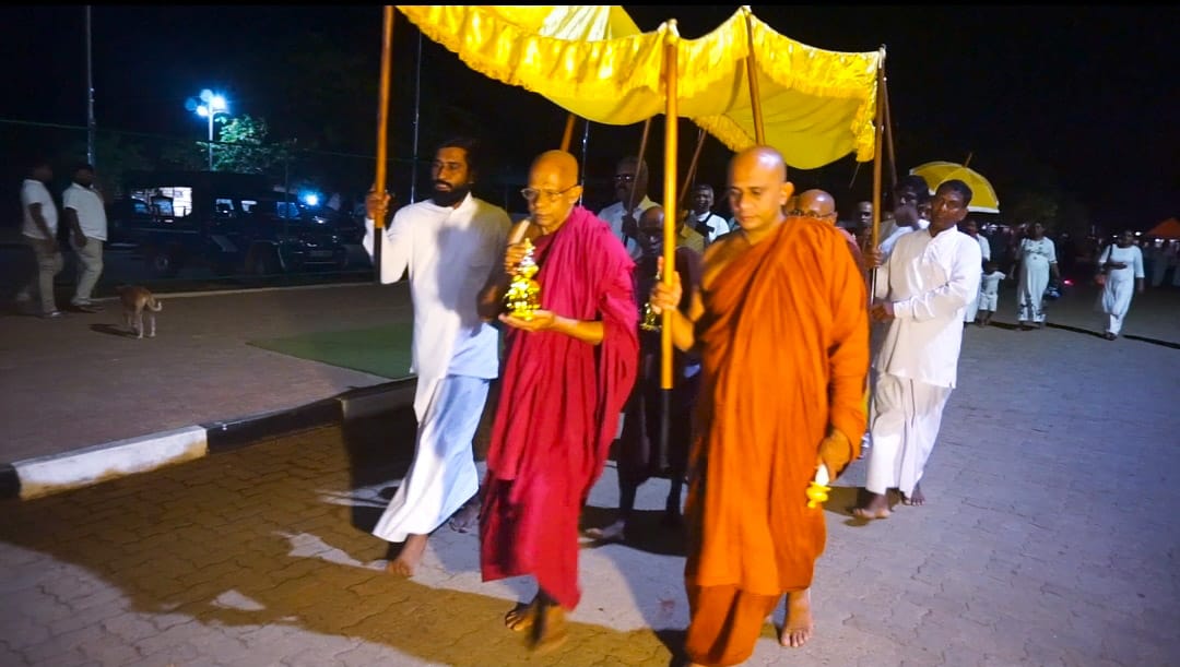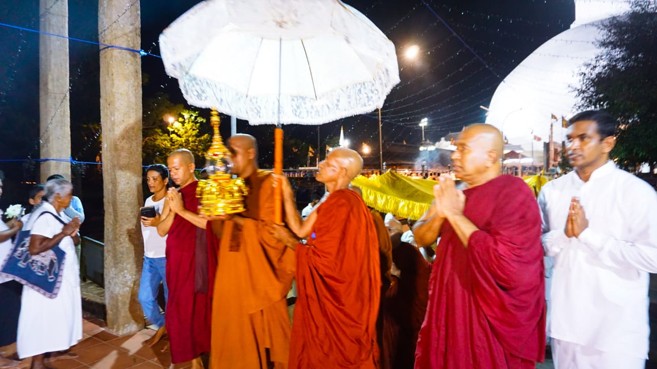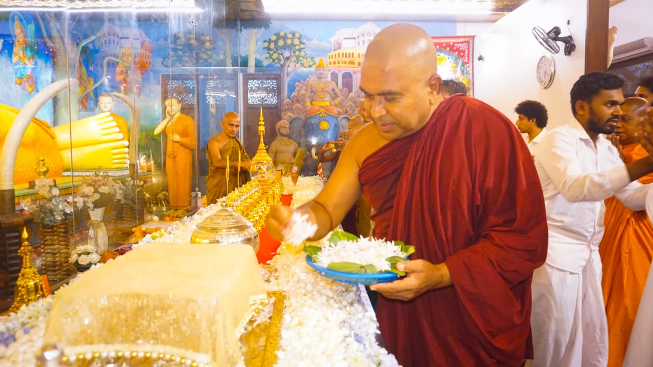 පාගමනින් රුවන්වැලිසෑ පරිශ්‍රයේ සිට අනුරාධපුර පෑතිස් වෙහෙර සඝසතු දාන ශාලා පරිශ්‍රයේ අභිනවයෙන් ඉදිකළ සම්බුද්ධ මණ්ධිරය වෙත වඩම්මවා මහා සංඝරත්නය විසින්ම තැන්පත් කරන ලදි.