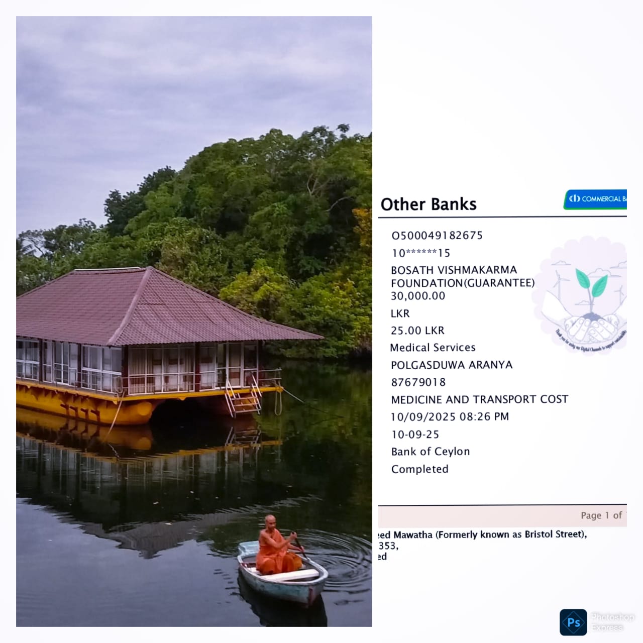 පොල්ගස්දූව ආරණ්යසේනාසනයේ වැඩ වාසය කරන්නා වූ දේශිය සහ විදේශීය ස්වාමින් වහන්සේලා උදෙසා මාසිකව වැය වන ඖෂධ වියදම් සදහා රු.15,000/=ක් සහ ආරණ්යයේ අවශ්යතා වෙනුවෙන් වන ගමන් වියදම් සදහා රු.15,000/=ක මුදලක් ආරණ්ය සේනාසනයේ කැපකරු ගිණුම වෙත බෝසත් විශ්මකර්ම පදනමේ සත්පුරුෂ කළ්යාණමිත්ර පින්වතුන්ගේ දායකත්වයන් මත තැන්පත් කරන්නට විය.